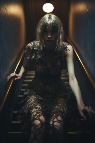 surrealistic, evil, exorsism, gothic, photorealistic, Leica M10-R 8k Leica 35mm lens, Tilt Blur, Shutter Speed 1/ 1000, F/ 5.6, Super - Resolution, --ar 97:145 --s 250 --v 5.2