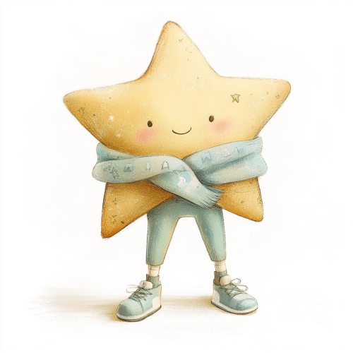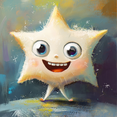 children’s book illustration , 3 d star , very very cute , very big eyes and very big broad smile with two Very big front buck teeth only , very flexible poses , oil painting with abstract brush strokes , cinematic lighting , light and shadow , very colourful, soft Pastel colours