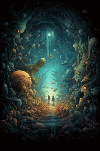 colorful bright children's book illustration in the style of beksinski and dali and giger and dr seuss --ar 2:3 --v 5.0