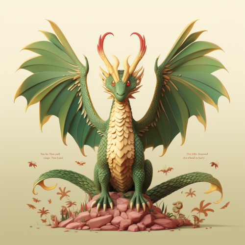 children's book illustration, pixar style illustration, sheens of green and gold, full-body character model of dragon serpent with wings and red scales