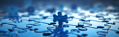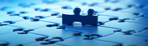 single puzzle piece, blue colours, focused, realistic --ar 19:6