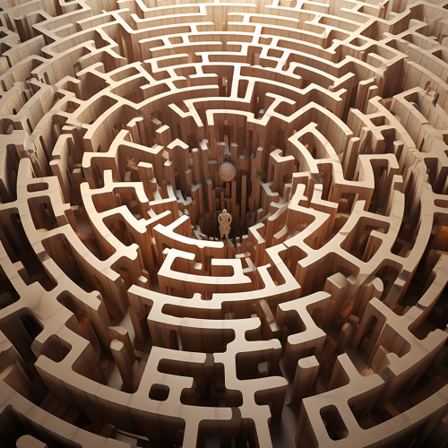 labyrinth-puzzle-brain, simple illsutration, perspective, concept --upbeta