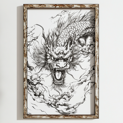 A complete form of an ancient Chinese dragon appears in the sky and clouds --stop 30 --ar 16:9