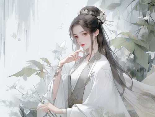 ((masterpiece, best quality:1.2)), (ultra-detailed:1.2), (masterpiece, top quality, best quality, official art, beautiful and aesthetic: 1.2),chinese hanfu, ancient chinese style, chinese costume,ancient chinese background a beautiful girl wearing a white ancient chinese long dress. the long dress is very shabby and has long black hair. woman, satisfied expression, sitting at dining table, patting her stomach contentedly, placing utensils on the table --niji 5 --ar 4:3