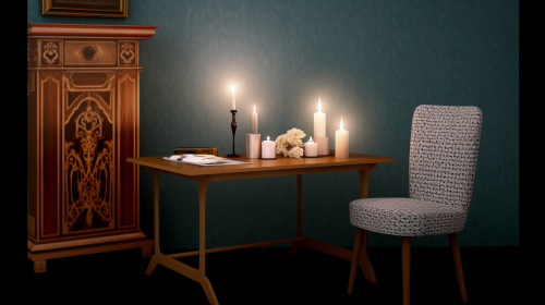 candlelights in a traditional chinese mansion at night, in tang dynasty, dark ambient, chinese watercholor splash style, --ar 16:9 --no lanterns --no people