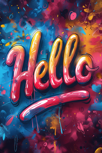 Typography design of words "Hello" written in pop art, line art, ink, --ar 2:3 --style raw --v 6.0 --s 750
