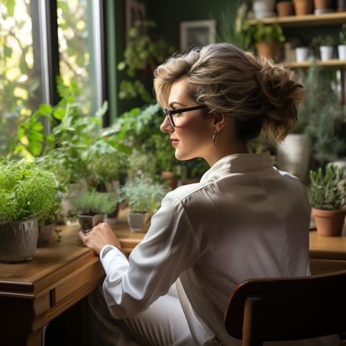 image d'un médecin féminin avec une blouse blanche de 50 ans, cheveux court avec des lunettes, réel, sérieux --s 750