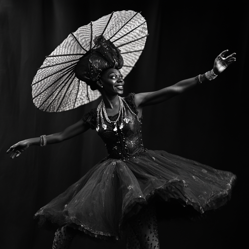 Eccentric and quirky children performing a Christmas dance. Festive stage backdrop. They are meticulously posed and positioned in a minimalist symmetrical setting. Black and white with vibrant color splash. Vibrant hues. Tapestry of whimsy. nostalgia with a dash of quirky charm. Shot with a Pentax. K - 3 III Monochrome. Santa hats. Christmas tree in background. Presented in cubist art style. Extreme close - up camera angle. Very close. Low angle camera shot. Looking straight up, Blurred background. Bakeh elements. High - end. Very Stylish. Black and white photograph. --ar 16:9 --q 0.5 --s 750