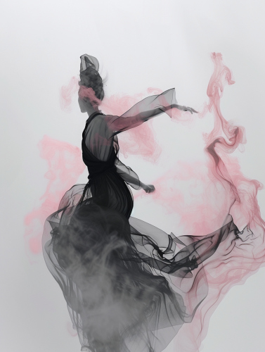 Graphic illustration, girl in traditional Chinese dress, standing, light and shadow, elegant movement, minimalism, animation, black and white gradient, high quality