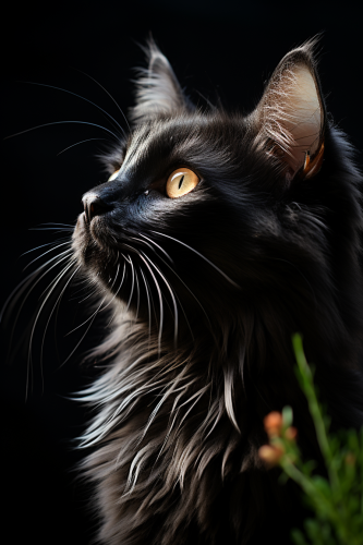 horror, gothic black cat, side view, elegant, photorealistic, Leica M10-R 8k, Leica 35mm lens, Tilt Blur, Shutter Speed 1/ 1000, F/ 5.6, Super - Resolution, --ar 97:145 --s 250 --v 6.1