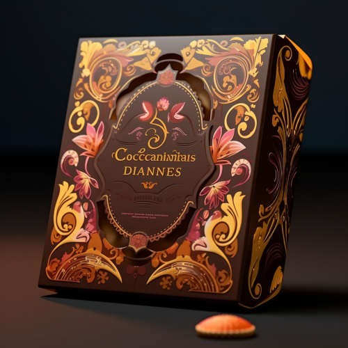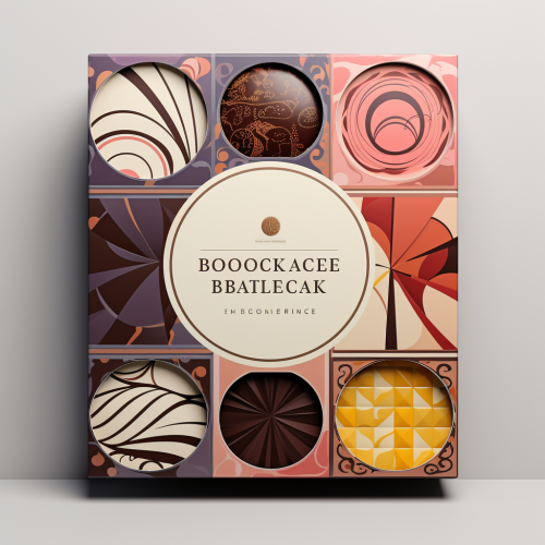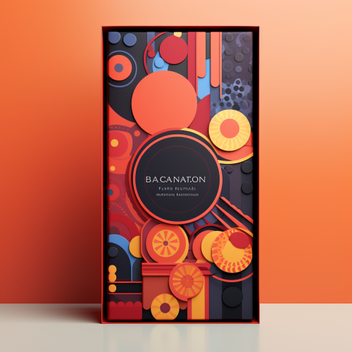 3D template, Package Design for chocolate bonbons, rectangle shape, closed box, luxurious, geometric design, funky and bright, sleeve cover layered paper with cutouts, circles design, technical presentation, circular pattern