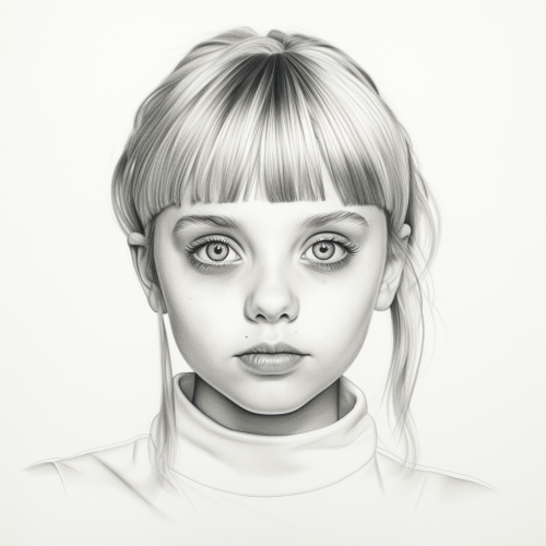 a realistic pencil drawing of blonde, 12-year-old Christina Ricci having fun, minimalist line art, simple, minimalistic, crude, noir, sketch, pencil