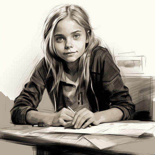a realistic pencil drawing of blonde, 12-year-old Christina Ricci having fun, minimalist line art, simple, minimalistic, crude, noir, sketch pencil, shel silverstein, quentin blake