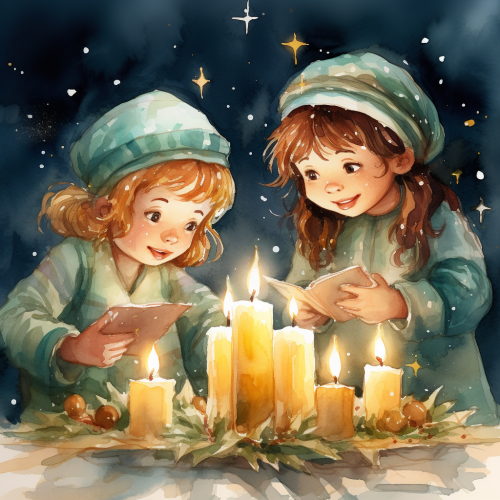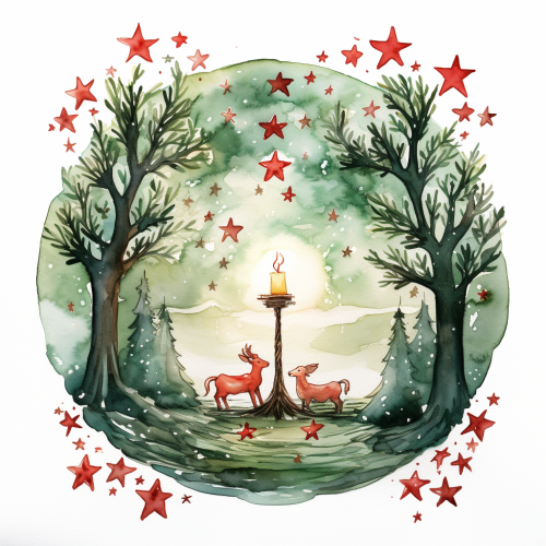 watercolor style, Pixar Style Amidst the lush fir greenery, the third candle of the Advent wreath shines, a sign of joy. Golden stars, glowing Christmas balls and cheerful angels are grouped around them. Three wise kings with precious gifts in their hands approach the stable in which the newborn child lies. This scene embodies the expectant joy and rich gift of Advent, which prepares us for the coming Christmas. Сlipart, isolated on white background, --v 5.2
