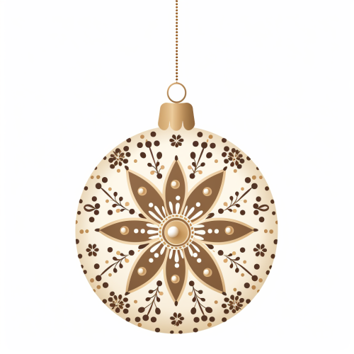 svg style, beige and gold, flock of christmas elements in the shape of a christmas ornament, simple design, isolated on white background, simplified --no gradients, shadows, colors --v 5.2 --s 50