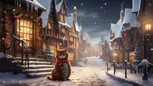 Top view, High Angle shot, front view, hyper realistic, winter, dusk, snowy, Nordic fairy tale style village, Christmas, beautiful, modern, warm atmosphere, Canon EOS R5 with a 200mm lens, --style raw --v 6.1 --ar 1:1