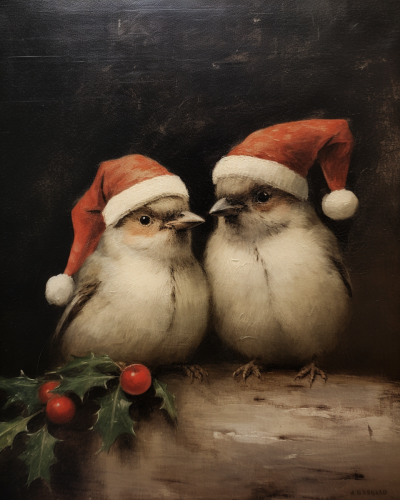 illustration of Golden Retrievers partying at a Christmas Party with Santa hats, snow, drawn in the style of Oliver Jeffers, soft light, pastel colors, Christmas theme, childrens book illustation --ar 2:1 --v 6.0