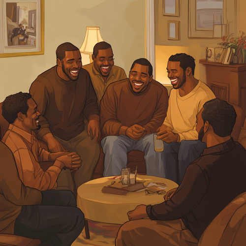 A realistic scene featuring a gigantic bowl of noodles, with the face of a middle-aged Japanese man embedded within the noodles. The noodles should appear lifelike, with realistic textures and details. The setting is a traditional Japanese kitchen, warmly lit, showcasing wooden elements and traditional decor. Surrounding the bowl are realistic middle-aged Japanese men and women, dressed in casual yet neat clothing, engaged in lively conversation as they joyfully prepare to enjoy the noodles. Emphasize the expressions of happiness and camaraderie among them, with warm, inviting lighting highlighting the vivid colors of the noodles and the joyful atmosphere.