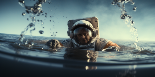 cinematic still, film by christopher nolan, astronaut yelling in the megaphone, library, ultra wide angle --ar 2:1 --v 5.2 --style raw