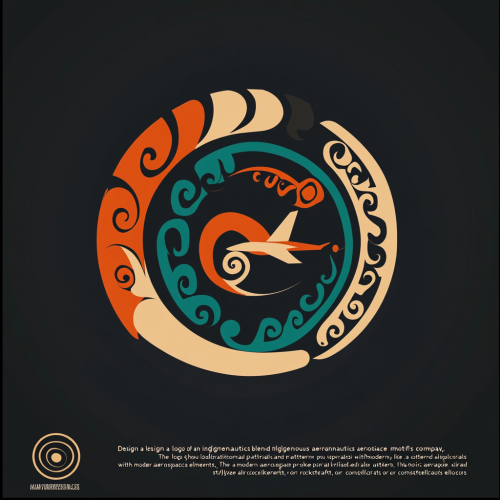 "Design a logo for an indigenous aeronautics and aerospace company. The logo should blend traditional indigenous motifs, such as Māori koru spirals or Native American patterns, with modern aerospace elements like a stylized aircraft, rocket, or constellation. Use earthy tones like ochre, teal, and deep blue to symbolize the connection between earth and sky. The design should evoke a sense of innovation, heritage, and the boundless possibilities of space exploration while honoring cultural roots."