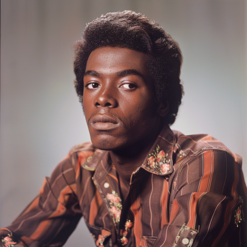 Ebony black male hollywood actor at the age of 26 in 1977, colored portrait, straigh to the camera