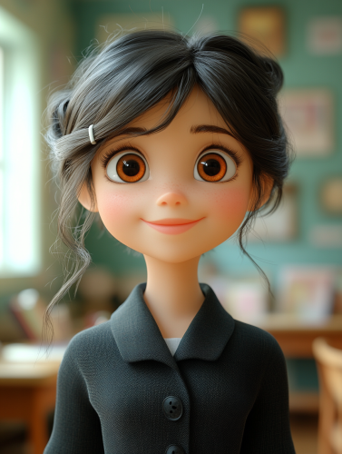 Create a 3D animated character portrait with large, glossy eyes and smooth, semi-translucent, blurred skin. The character should have a soft, ethereal glow, as if lit from within. Their expression should evoke a melancholic yet whimsical mood, with subtle features like teardrops or misty eyes. The colors should be soft and pastel, with gradient hair blending vibrant yet soft tones like blue, pink, or green. Incorporate elements of surrealism, such as dreamlike lighting and exaggerated proportions, giving the character a floating or otherworldly appearance. The overall style should be polished, surreal, and emotive, with a soft blur over the skin to enhance the ethereal, dreamlike atmosphere.