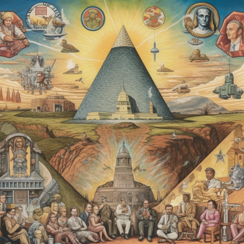 an artist's rendition of the world's greatest conspiracies on a single canvas --s 750 --v 5.0