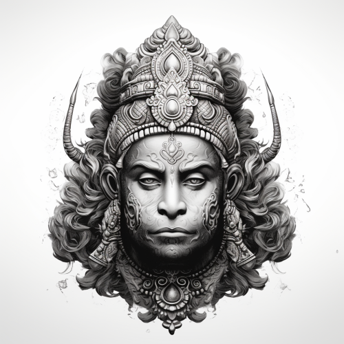 :illustrative high definition waist to head rendition of hindu god Hanuman in black and white