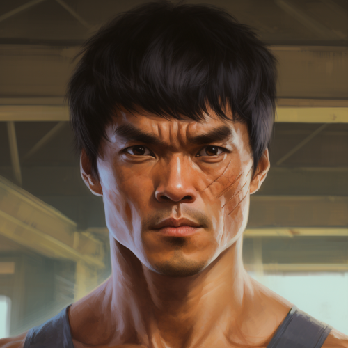 gangster brucr lee. Male. Portrait. --style 3fsE3uZyG4D --v 5.2