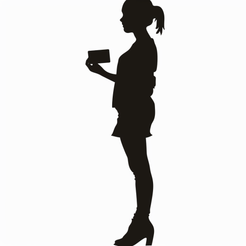 gender neutral cartoon Silhouette of person-full body; handing over credit card ...no background