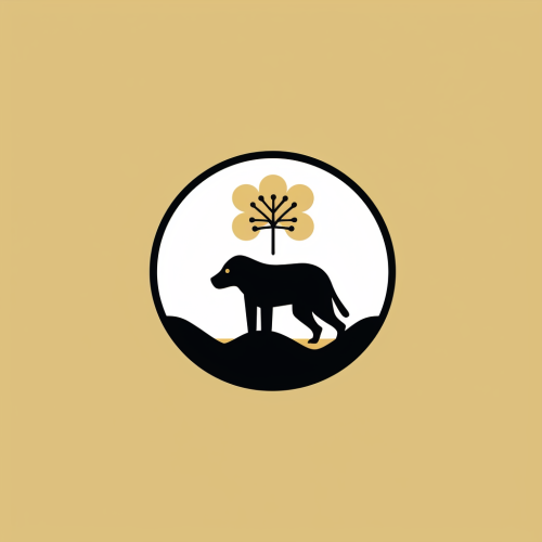 flat vector logo circle of labrador smelling a black truffle in crest, minimal graphic, very simple, minimum lines, --no realistic photo detail shading