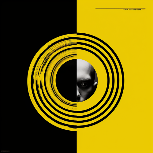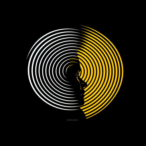 apeirophobia, psychological thriller film poster, human head side profile radiates concentric circles, ripple effect, side profile, mental, neo-noir, simple, minimalist, white, black, yellow --v 5.2