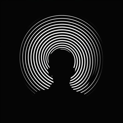 apeirophobia, psychological thriller film poster, human head side profile radiates concentric circles, ripple effect, side profile, mental, neo-noir, simple, minimalist, white, black --v 5.2
