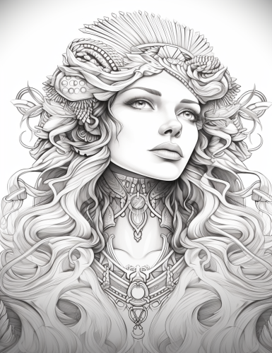 coloring page for adults, mandala of aphrodite, black and white only, thick lines, no shading, high detail, high quality, high resolution --ar 17:22