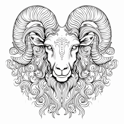coloring sheet, adult illustration, mandala style, mandala goat image, white background, symmetrical image, clean line art, solid line art, no color, no shadow --v 5.2