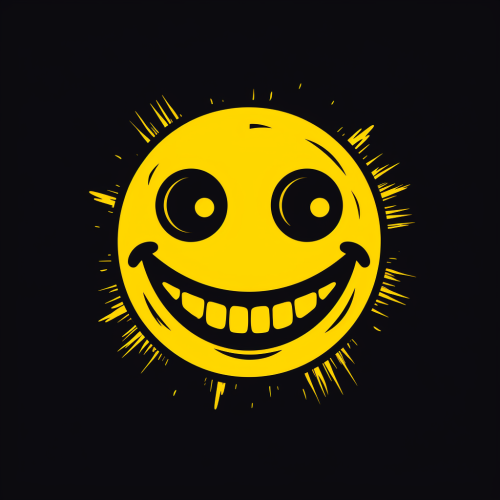 Circular logo with yellow sun, smiley face, white dove.