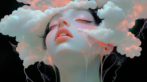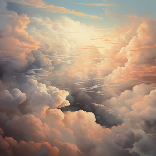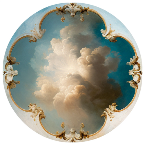 A fresco work with only clouds, clouds moving towards the middle of a circle, clouds arranged in layers, clouds standing divine and majestic, Francisco Goya --v 4