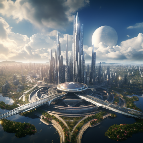 super realistic high definition futuristic city in the clouds, flying cars, massive skyscrapers, clouds, utopia, high octane render