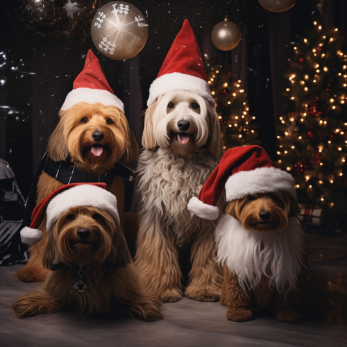 goldendoodle in a star wars christmas, wookie family scene, life day,