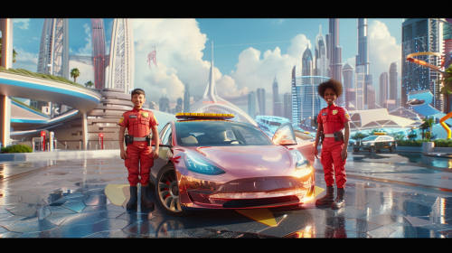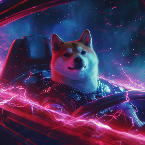 cyber dog shiba inu in the tesla cybertruck, flying in the outer space, optimistic atmospheric, euphoric, vivid lighting --v 6.0