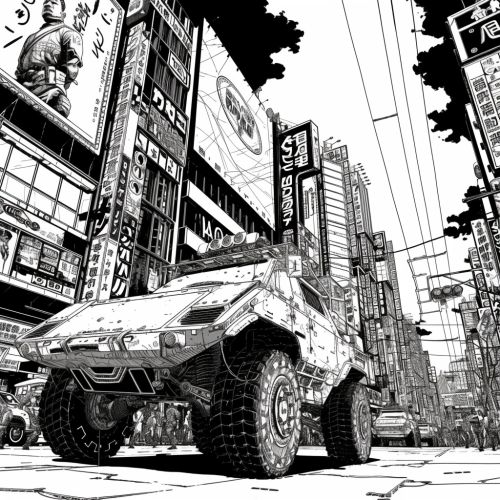 japanese comic black and white showing the launch of the Cybertruck in Tokyo --v 6.0