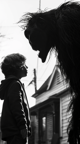 Jennifer Kent directing young Noah Wiseman on the set of The Babadook, ensuring he doesn’t see the terrifying monster. Hyper realistic, --ar 9:16 --style raw --v 6.0