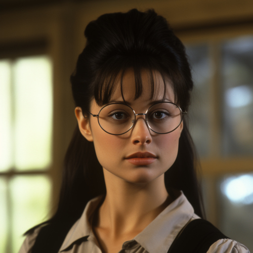 chelsea kane as claire kent wearing glasses and her hair in a ponytail in the 1978 movie realistic