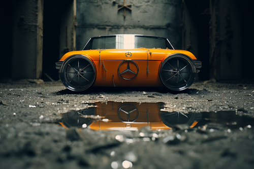 Cinematic still, film by Wong Kar - wai, barbed wire, white light, Mercedes Benz Logo, orange paint, vintage photography, film photography, portra 400, grainy image, light and shadow, top down shot, concrete texture sunglasses, tetris, Oakley sunglasses Ad, blender render, vintage oakley ad, inside a vault --v 5.2 --ar 3:2 --s 250