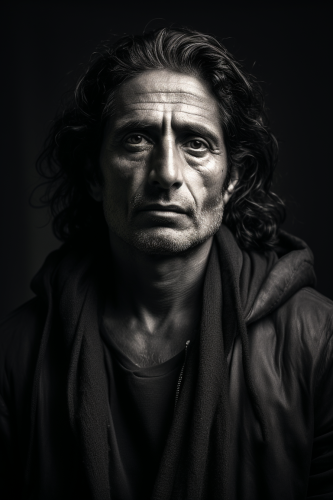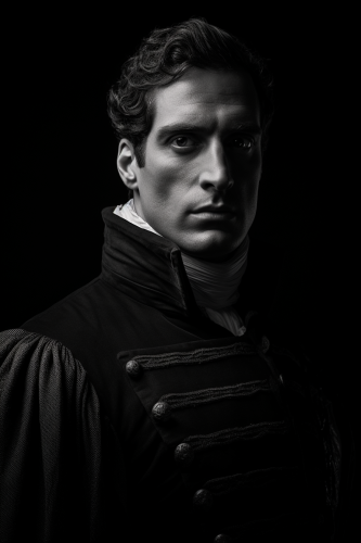 black and white portrait photography of Julius Cesar, on light blurred background. High contrast. --ar 2:3