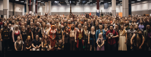 mixed gender bunch of people having an event at a convention, photography --ar 16:6