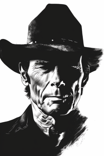 cool stylized Clint Eastwood western, comic book style with gun pointing.