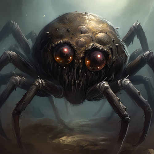 d&d art, giant spider with eye stalks from a beholder on its head, shadowy and black --v 5.0