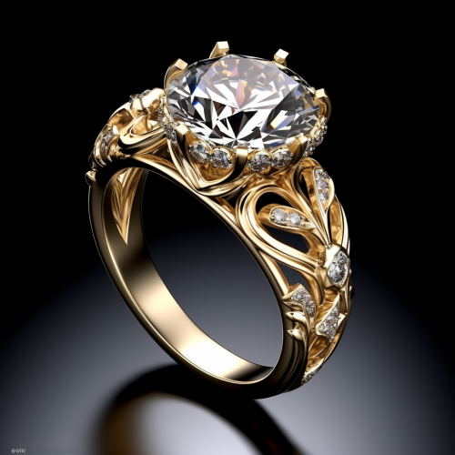 The diamond ring design with beautiful, sophisticated bending details on the ring rim brings a feeling of elegance, luxury, sophistication, and uniqueness. The image clearly shows the ring rim and shows the entire ring