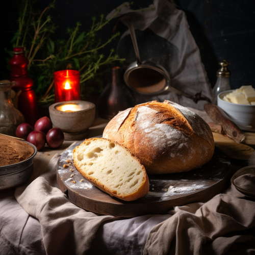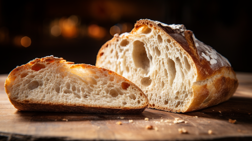 Close-up of freshly baked sourbread slices on black background